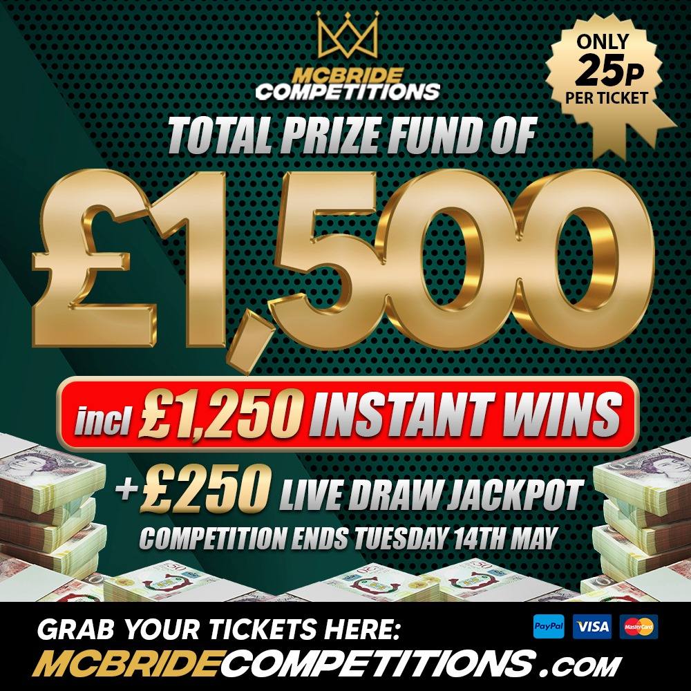 £1,500 PRIZE FUND!!! £250 LIVE + £1,250 INSTANT WINS!!!