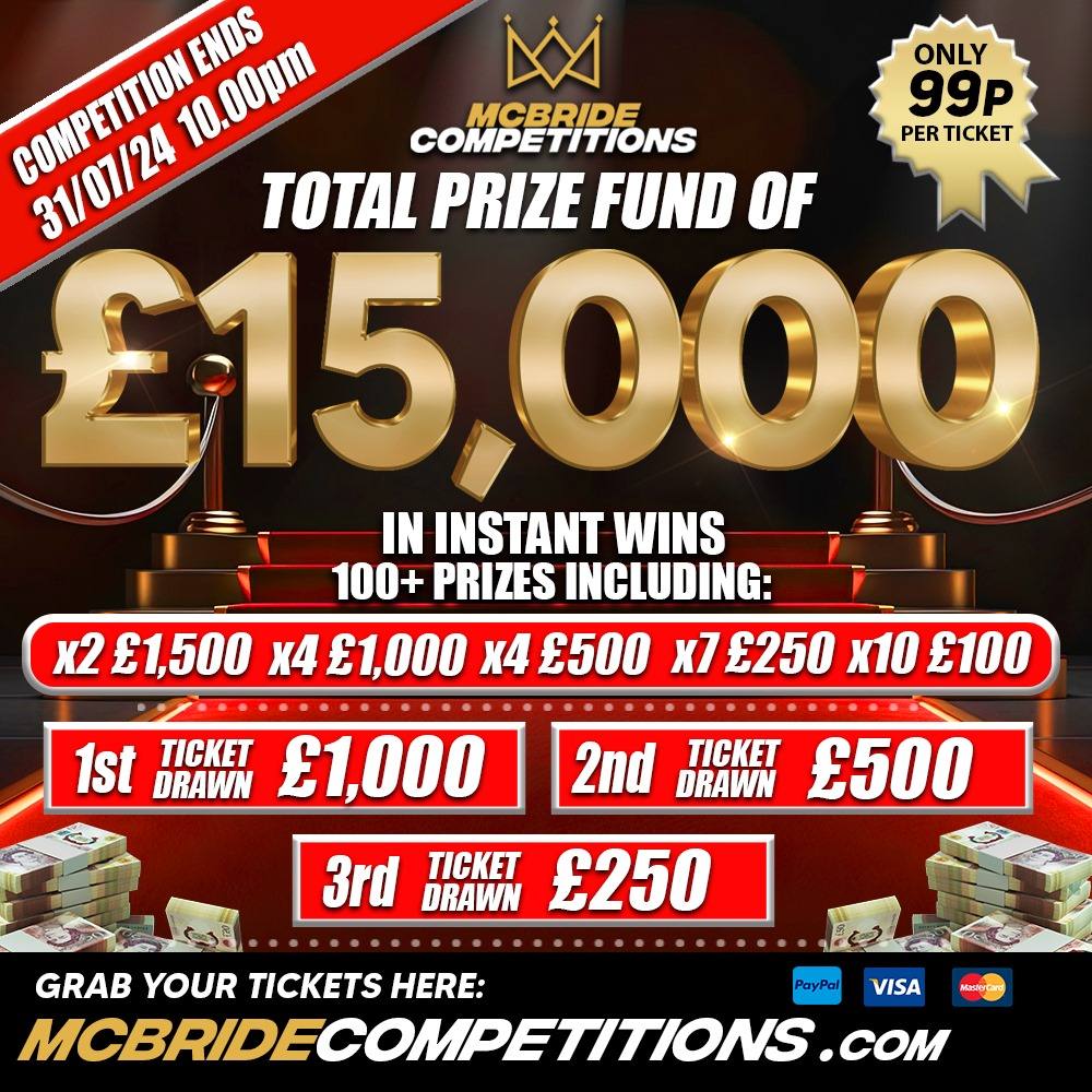 £15,000 PRIZE FUND 4 WAYS TO WIN!!!