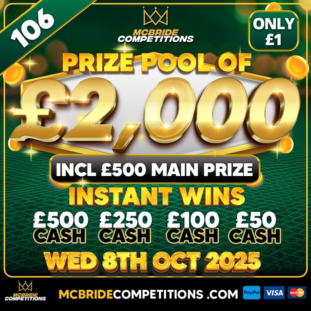 £2,000 PRIZE POOL! £500 DRAW PRIZE + £1,500 INSTANT WINS! #106