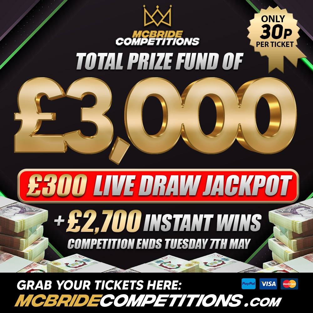£300 LIVE DRAW CASH PRIZE TO WINNER!!!