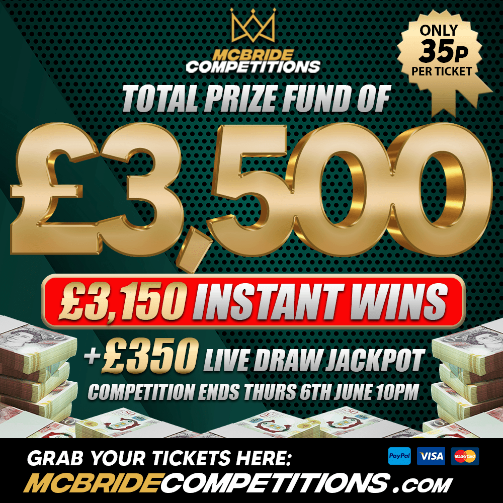 £3,500 PRIZE FUND!!! £350 LIVE + £3,150 INSTANT WINS!!!