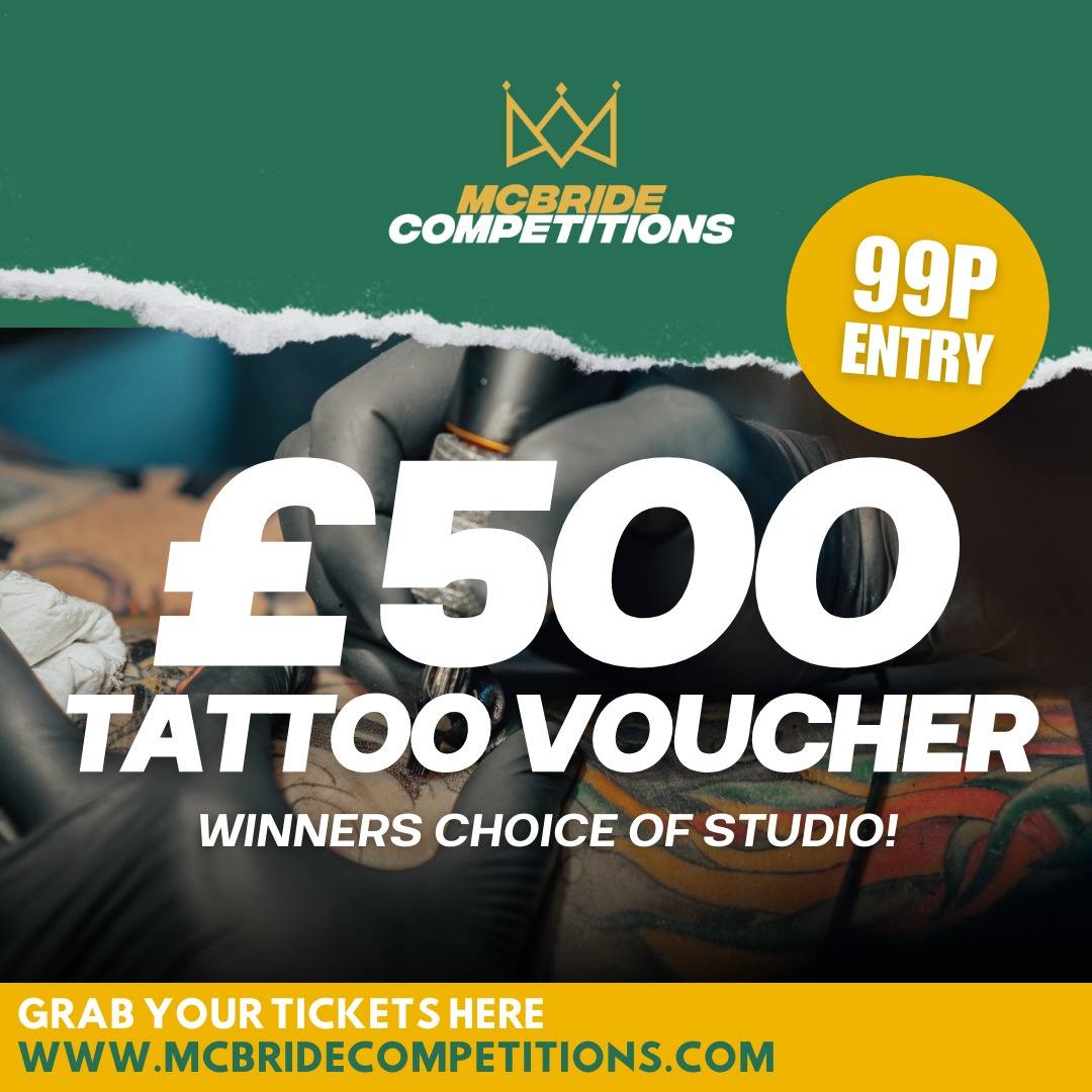 £500 TATTOO VOUCHER OR £500 CASH FOR 99P