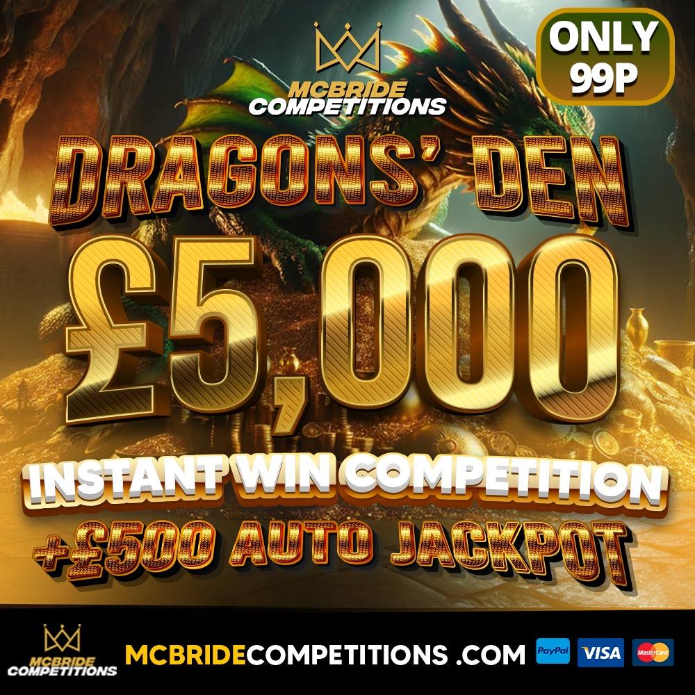 £5,000 TOTAL PRIZE FUND! £500 CASH + £4,500 INSTANT WINS! DRAGONS’ DEN!